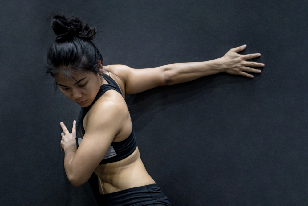 Here's where this stretch gets interesting – add a gentle rocking motion back and forth to continue stretching your biceps throughout the hold.
