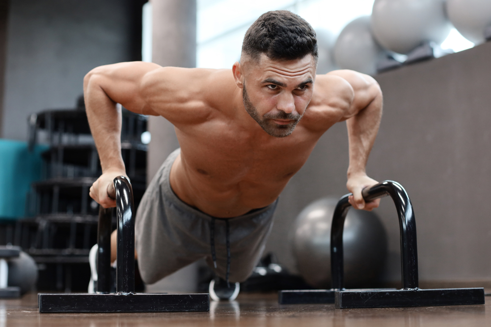 Advanced athletes can even try explosive plyometric push-ups where your hands leave the bars completely.