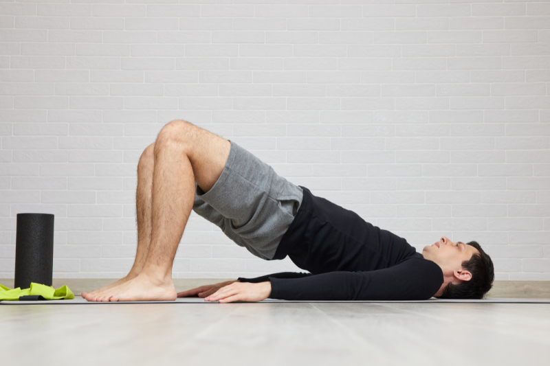 - Glute bridges with a 2-second hold — 2–3 sets of 12–15 reps, focusing on a hard squeeze at the top